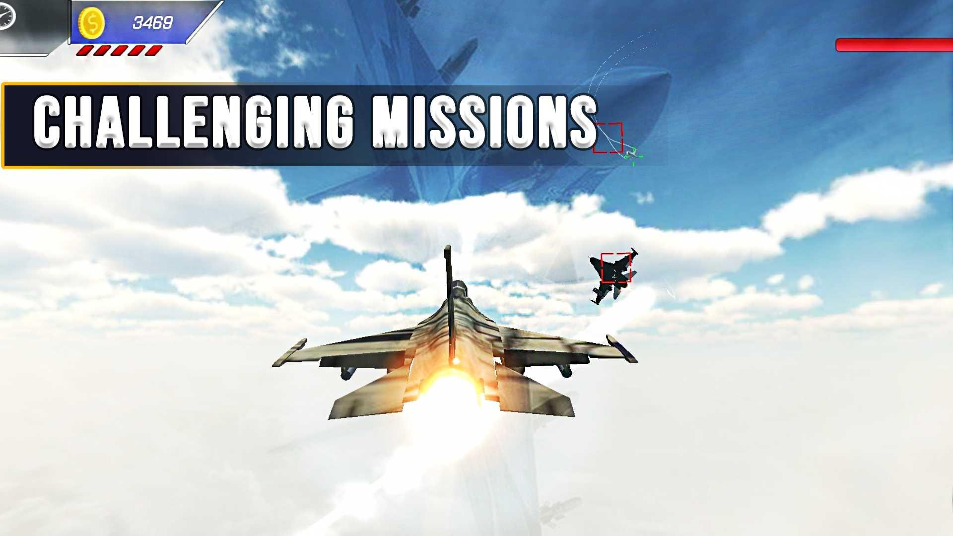 逼真的3D图形:游戏以逼真的 3D 图形呈现,提供最佳的战斗机射击体验,让你沉浸在身临其境的空中战斗之中。