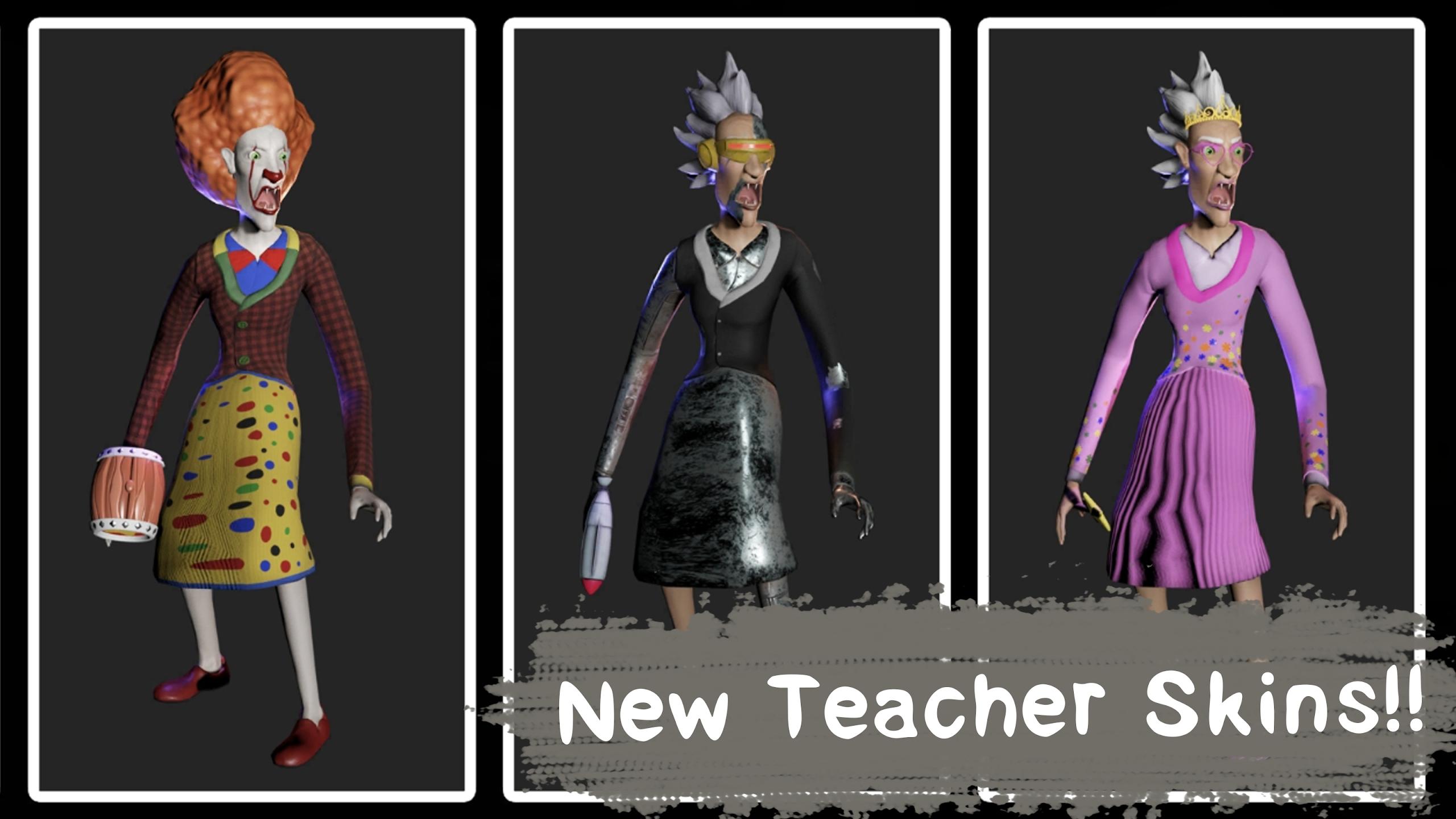 -4种不同的教师皮肤(标准,机器人-机器人,公主,以及用锤子的可怕小丑“它”)