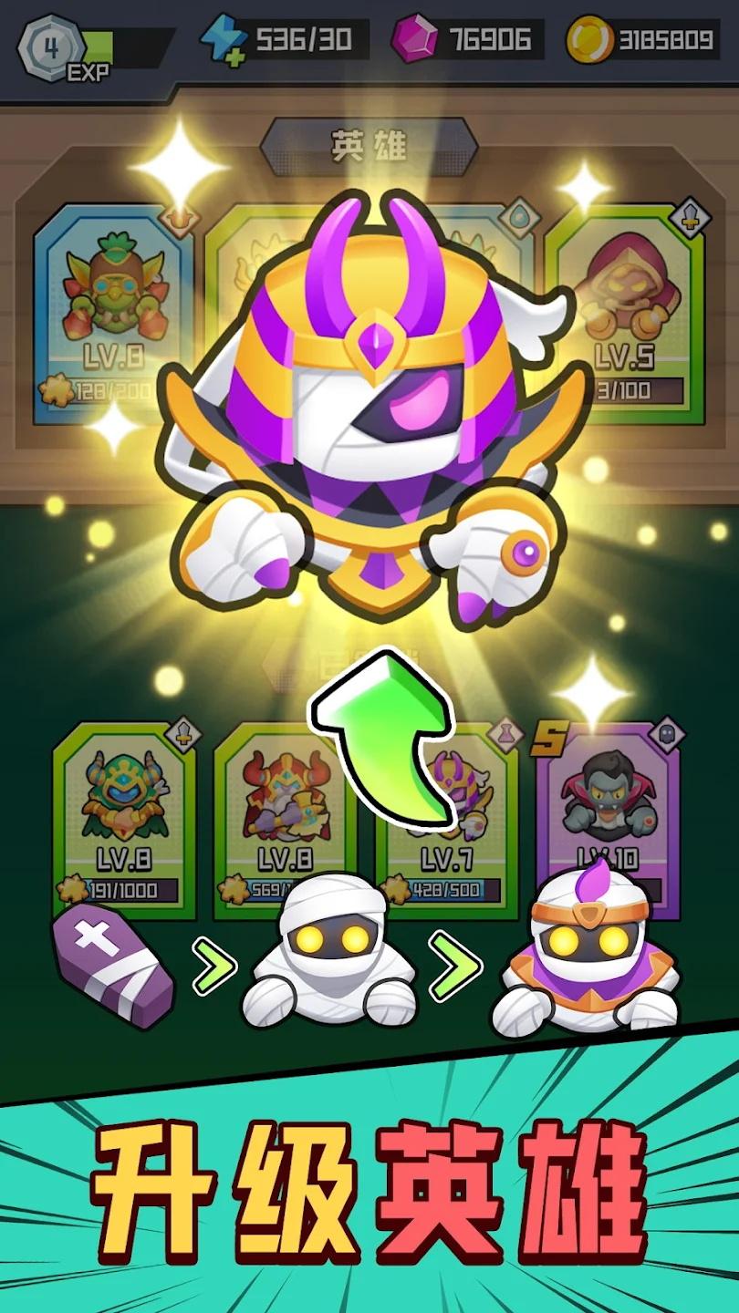 合并升级你的塔防英雄来解锁更多强大的英雄来摧毁邪恶的怪物。