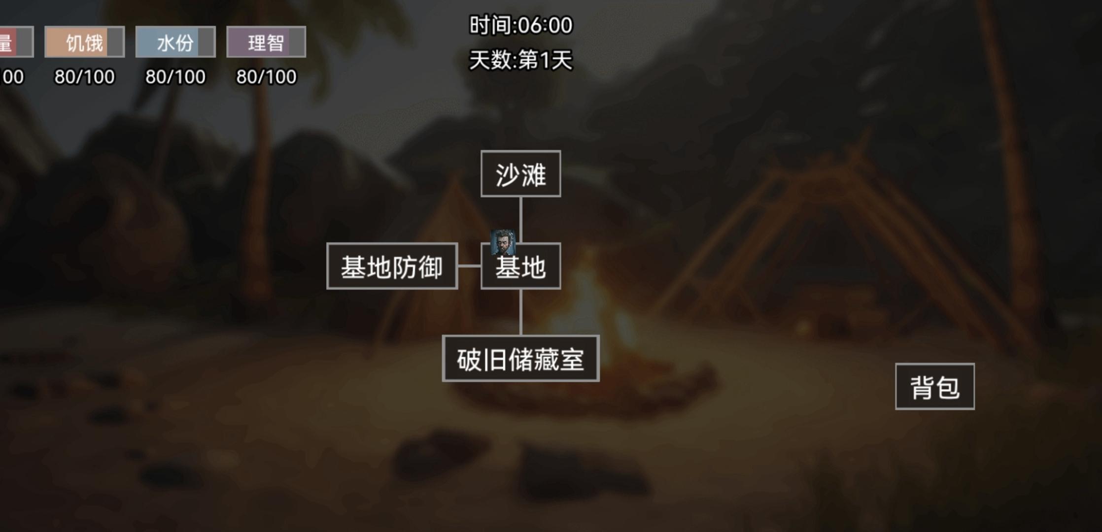 1.先去灌木丛在寻找资源处收集物资主要收集一些食物