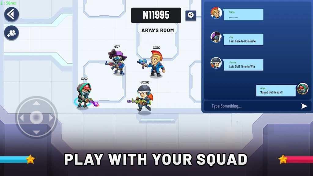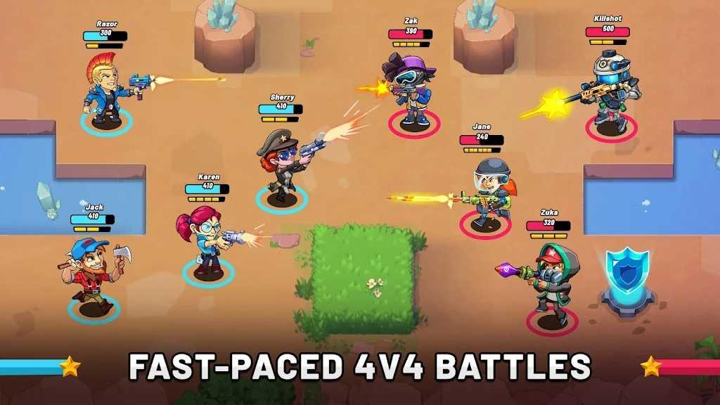 团队合作和策略是在4对4在线碎片专业射击明星游戏中获胜的关键。与朋友一起玩,组建部落,使用语音聊天与他们联系,并设计最佳的战术枪支游戏策略。在冲突中战略性地部署民兵,确保您不会绊倒人,利用自由射击竞技场来发挥自己的优势并击落对手!