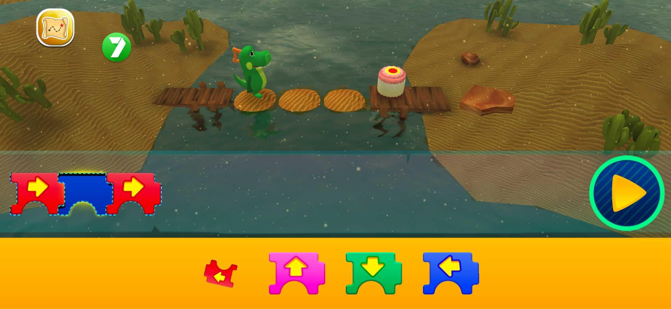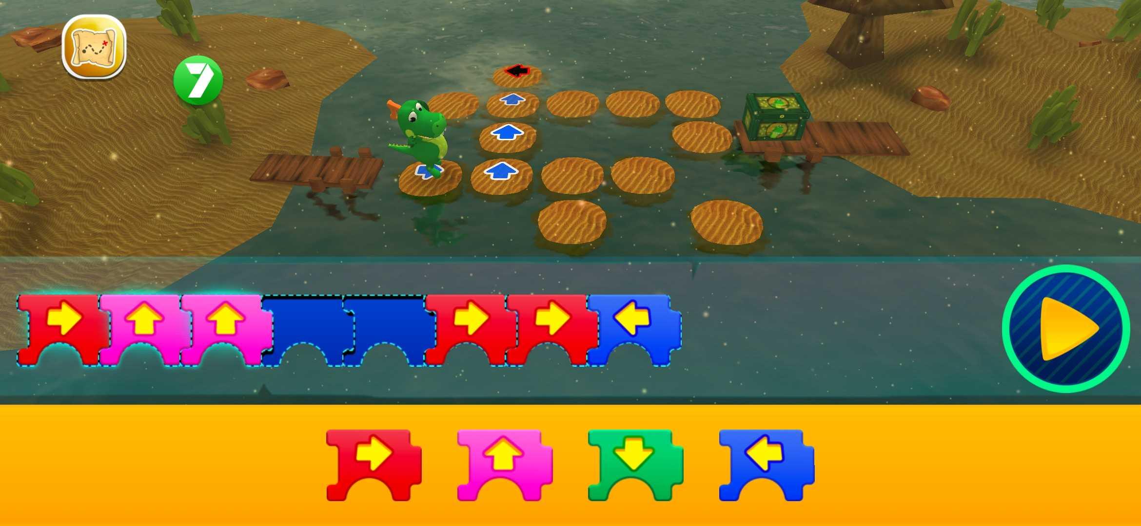《小鳄鱼的冒险》是一款游戏和学习相结合的应用,玩家需要通过解决问题来帮助小鳄鱼找到丢失的食物。游戏中包含40多个挑战、多个级别和障碍,可以让孩子学习如何创建命令链、更改参数和使用说明以解决不同类型的难题。