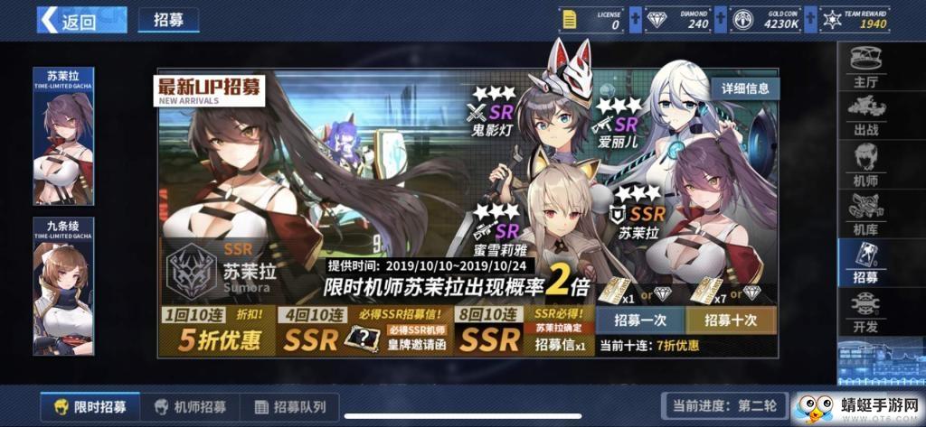 在游戏的招募系统里,有限时招募和机师招募两个选项。