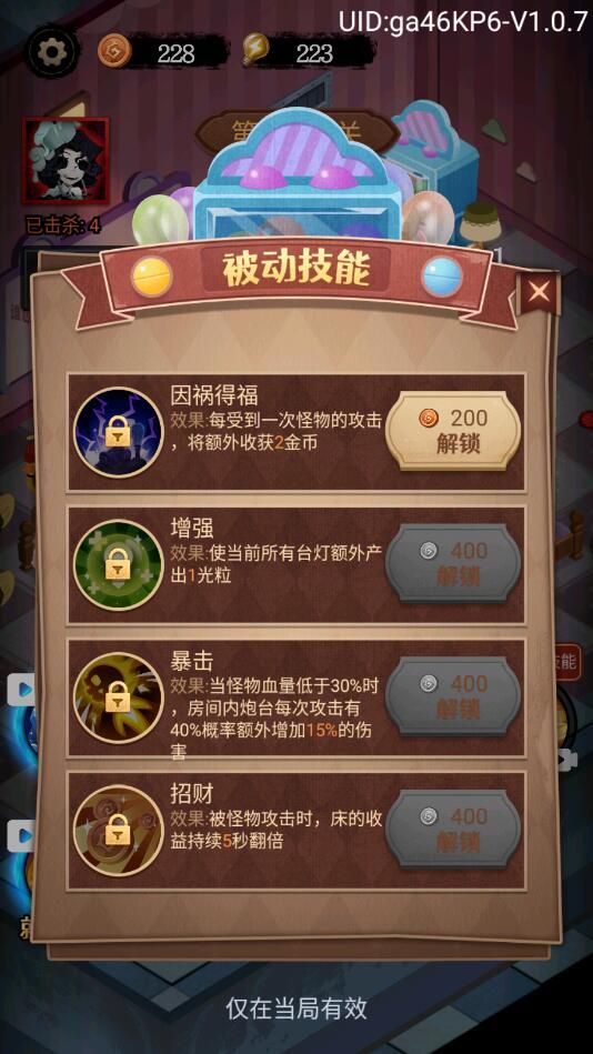 升级不同道具,加固房间,一起阻挡猎梦者入侵!