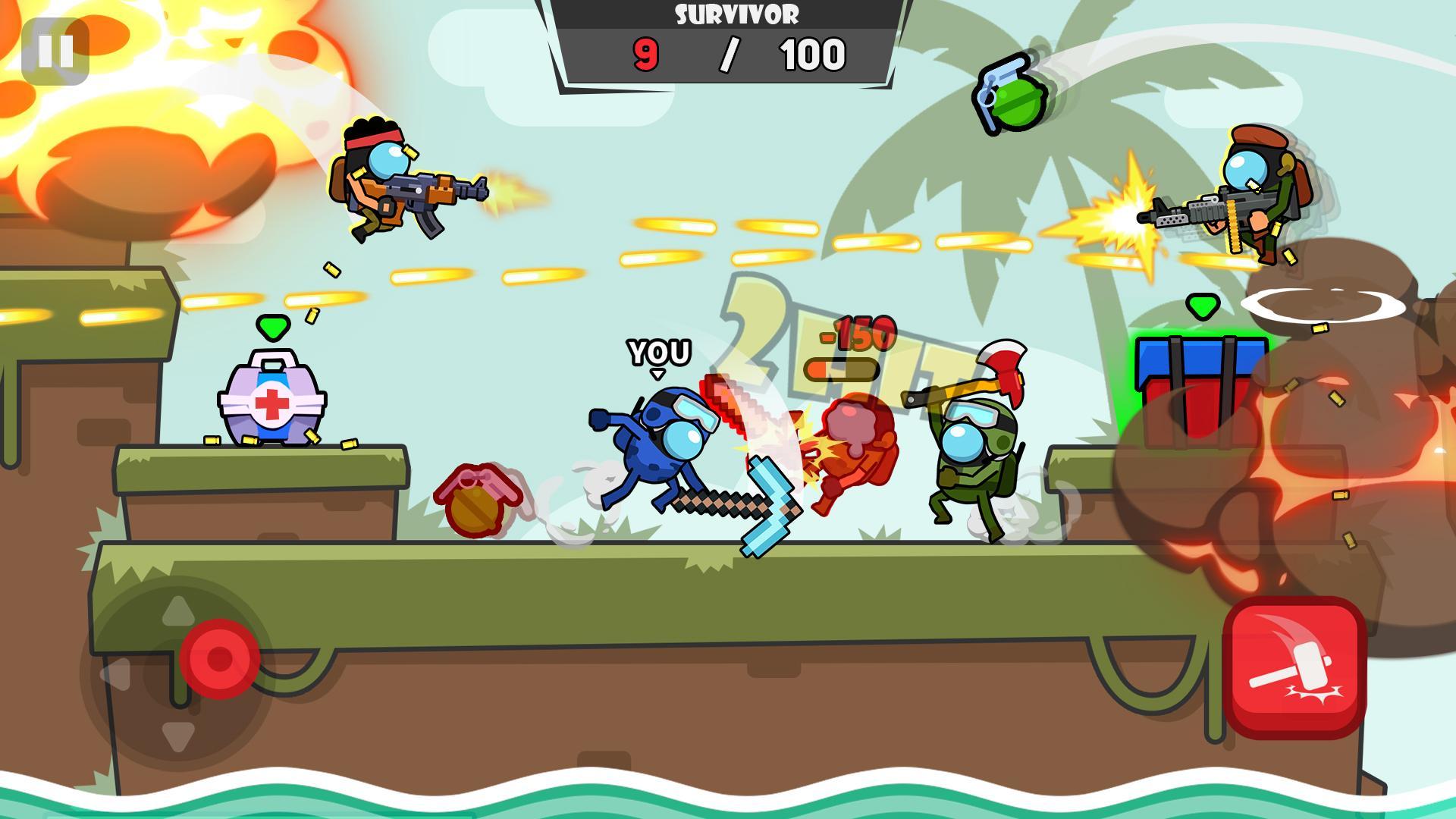《幸存者皇家大作战》是一款非常具有趣味性的动作游戏,有数十种武器等待您体验!游戏的操作非常简单,跟着教程去学习仅需十秒钟即可熟练操作游戏!您可以使用自己的武器或从地图上随机掉落的武器来击败对手!
