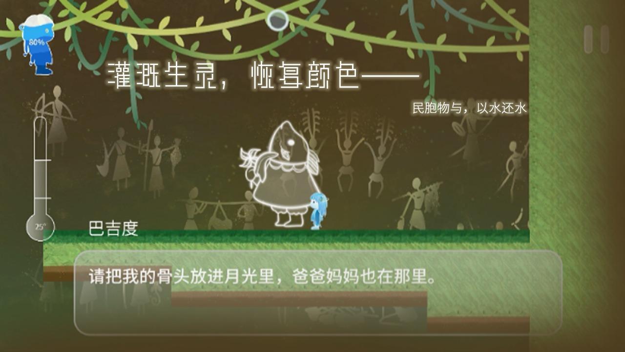 Return Water to Water是一款画风非常唯美,剧情十分治愈的横版冒险游戏,玩家将扮演一名叫做Chole的女孩跟着Gene的声音在地图中进行探索冒险,通过灌溉让这里的生物都恢复生机,解开这个星球的秘密。