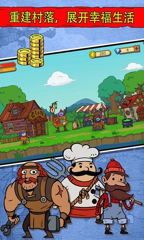 最后再说下这个游戏的剧情,剧情方面不是很多而且剧情感觉有点扯,恶龙把村庄给毁了!英雄却走了,所以就有了,我要当英雄,这个缘由,能有一个游戏的源头,