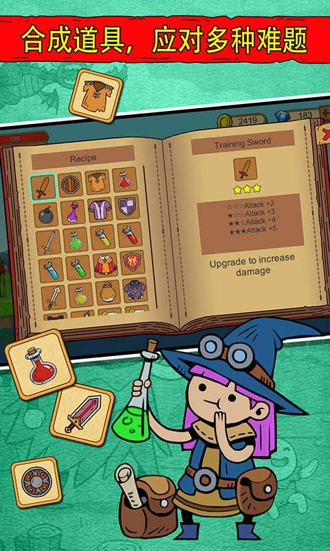 俺来当英雄最新版涵盖了Roguelike的冒险模式,在很久很久之前的世界中巨龙从天而降,家园,城市,农田都被毁于一旦,乱世需要拯救,勇者已经失去了力量,一切都等待着你这位穿越者来维护。