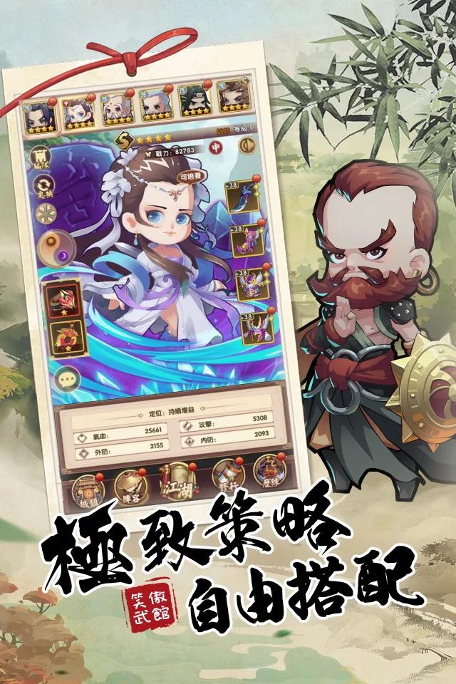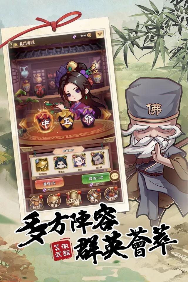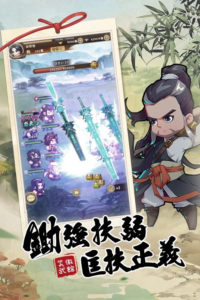 笑傲武馆是一款武侠题材的回合制策略游戏,游戏有着非常好玩的PVP,PVE玩法,非常注重策略性,杜绝了挂机的千篇一律,玩家可以任意组合阵容进行战斗,武侠风格的场景非常的精美,而且放置也有奖励,离线也能够获得收益,玩起来更加轻松。