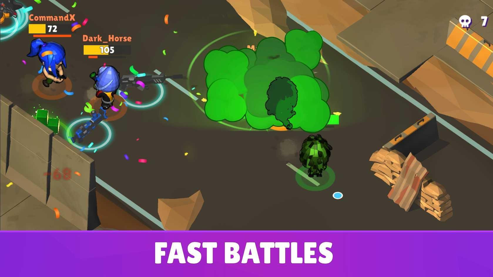 《战争io》是一款非常热血的在线多人竞技游戏,在这里你可以和世界各地的玩家们进行一场非常公平的同台竞技,游戏内角色非常多,武器种类也很丰富,游戏内场景非常精致,玩法也非常新颖,感兴趣的话来试试吧。