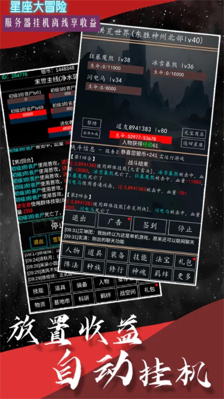 星座大冒险是北京懿宸科技有限公司推出的一款文字冒险的游戏,超级简单的文字类挂机游戏等你来袭,界面简洁明了,新手教程也比较详细。正常玩完全能体验全游戏内容,游戏里的搭配技能装备什么的,也比较简单不是那么复杂,实在不懂群里大佬也很多,也会给你讲解一些不懂的问题,游戏不肝不氪,非常适合一些上班族,学生党,每天抽空登一下看看爆出来极品的装备,也会非常开心。