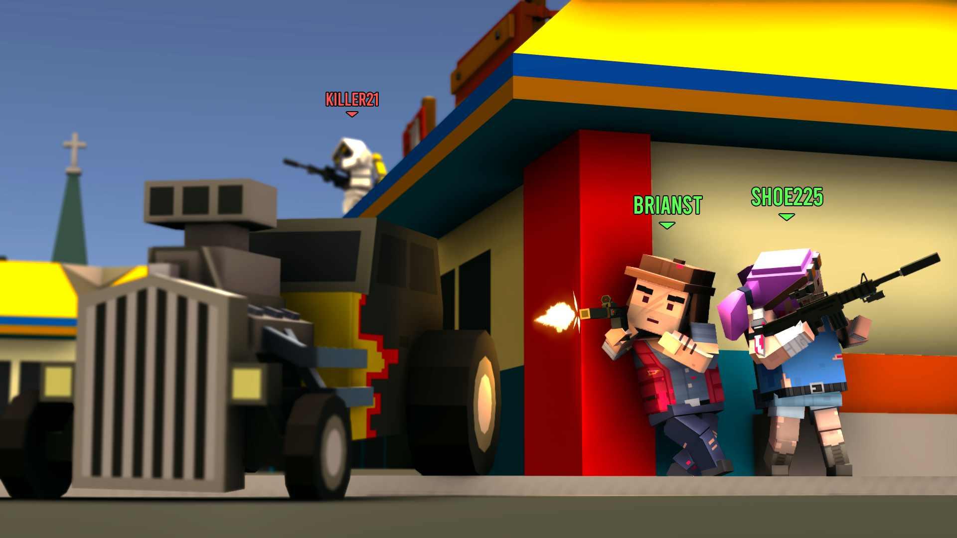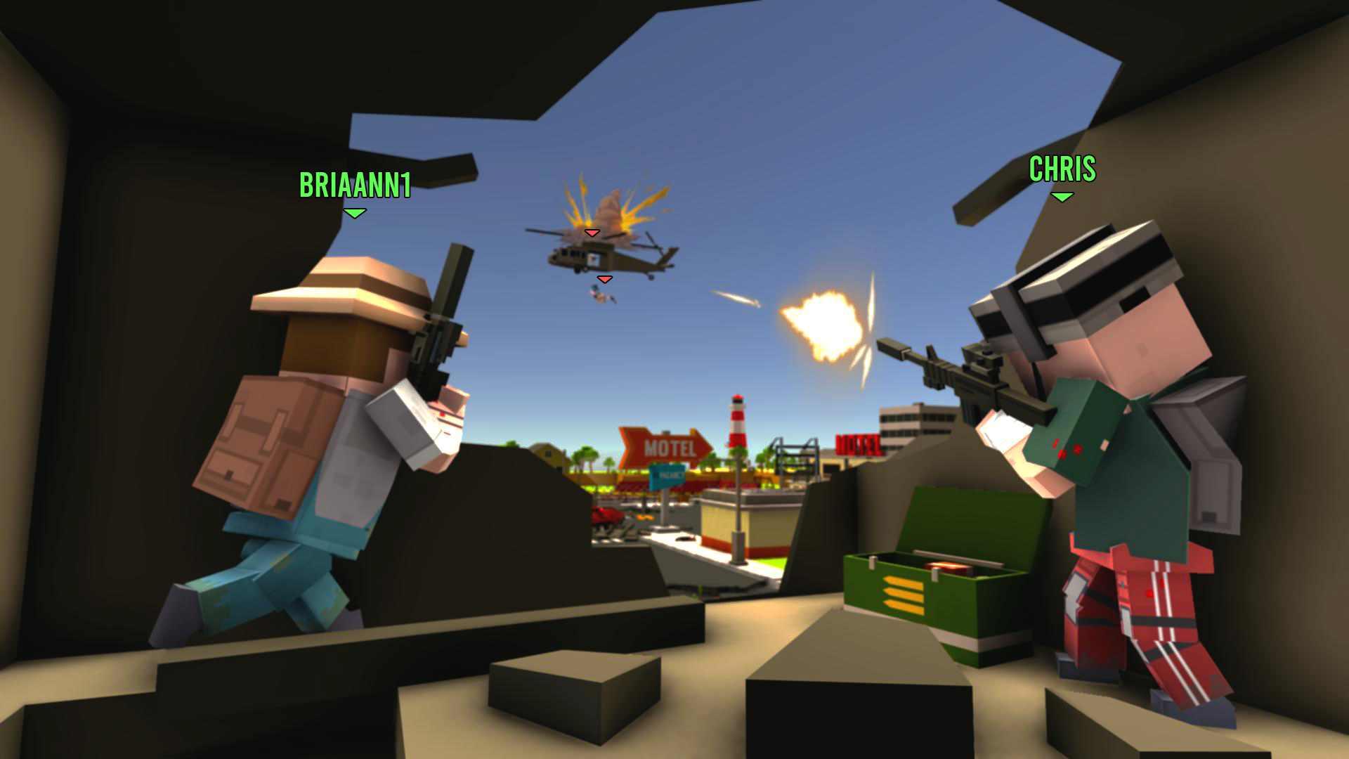 盗窃射击战争是一款基于像素立方体工艺风格的在线射击游戏,在多人游戏模式中,你可以和朋友一起游玩这个游戏,开放性世界供你们随意探索,选择最好的武器和枪支,加入最刺激的枪战游戏吧。