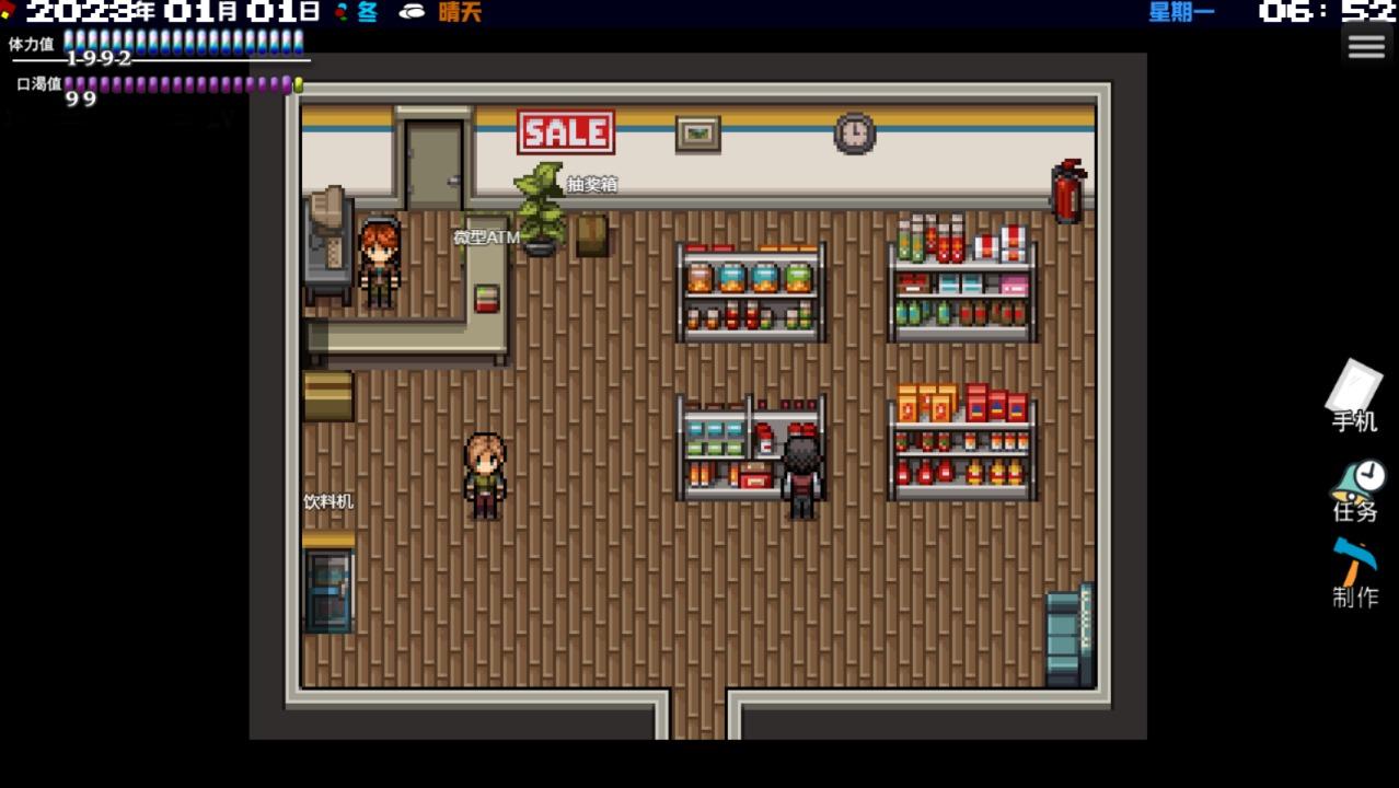 摆渡人生:末日危机还是采用了为之奋斗的画风,像素风格,画风简约,但不模糊,所有东西一目了然,缺点还是字体太小,这个还是没有改变,玩起来比较累。操作方面比较繁琐,就像我之前在为之奋斗里说的,像是电脑版游戏,开关选项时需要双击,操作页面也是比较偏电脑版,如果有外设的朋友玩起来会比较轻松。