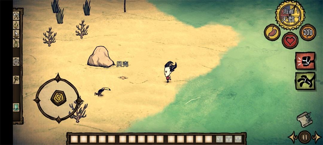 除此之外,下雨时会出现小水滴符号的湿度图标。右下角则是小地图,玩家可以查看自己的位置和探索的区域。地图下面是暂停和退出。