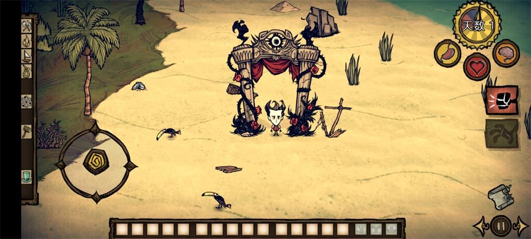 进入饥荒,玩家在游戏中具备三项数值:爱心符号的生命值、胃袋符号的饥饿度、大脑符号的精神值。