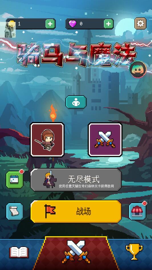 骑马与魔法是一款像素风格的冒险战斗游戏,游戏有无尽的战斗模式,技能和装备系统都非常的丰富,玩家需要在地图中与怪物进行厮杀,消灭怪物获得奖励来升级,竖屏的模式单手即可操作,玩起来非常的爽快简单。