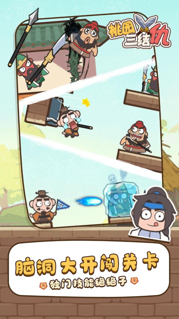 桃园三结仇游戏给大家破解成免广告获得奖励,这里面有三个景点的角色刘备、张飞和关羽,三个角色的技能不同,玩家需要控制这些角色互相帮助进行冒险,玩法非常的魔性,动画效果离谱魔性,能够让您开怀大笑;