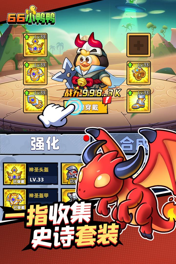 游戏中,会同时有1000+数量的怪物向你袭来,不用害怕,开启鸭之战神模式,带上炫酷的装备,收割消灭他们!