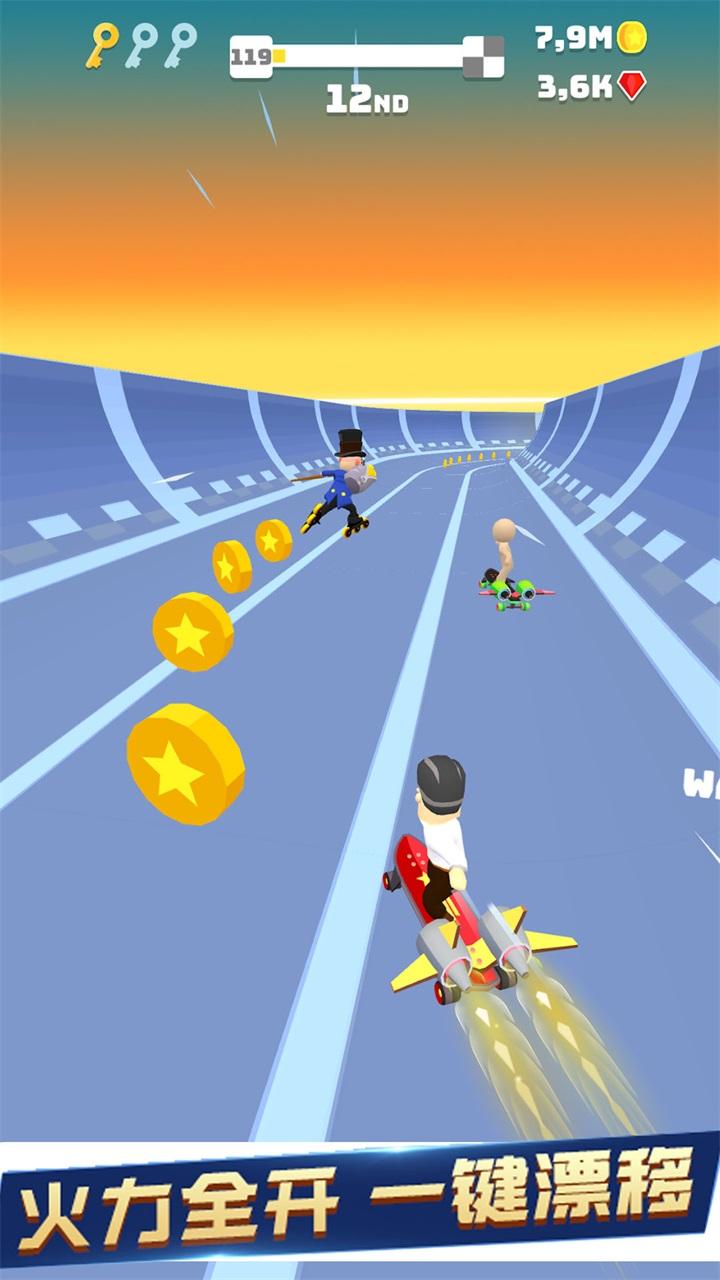 快跳上你的滑板,在这个狂野而快节奏的赛车赛道上加速!