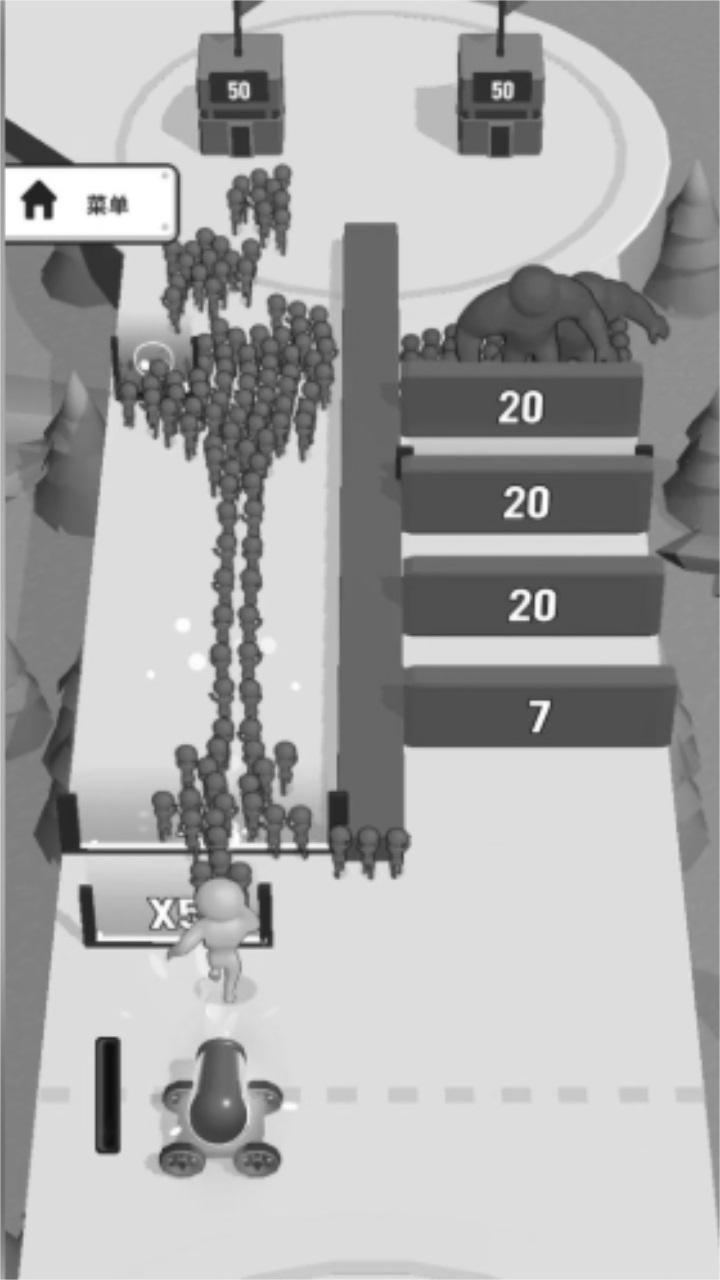拥挤城市人潮涌动,制造人群,穿过倍增buff的传送门,切记不要穿过红色的传送门,这样会让你的小人有来无回,消灭红色的敌人,包围并占领他们,制造足够多的人群,兄弟一起冲!去收集那些能够给你提供帮助的武器,更加顺利的完成生存挑战。玩家可以左右进行移动,这些炮塔也都会任你所控制。