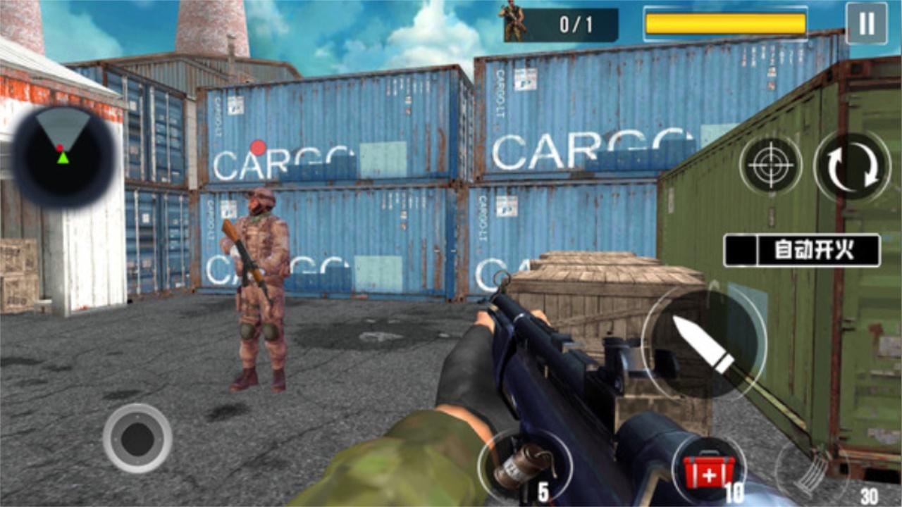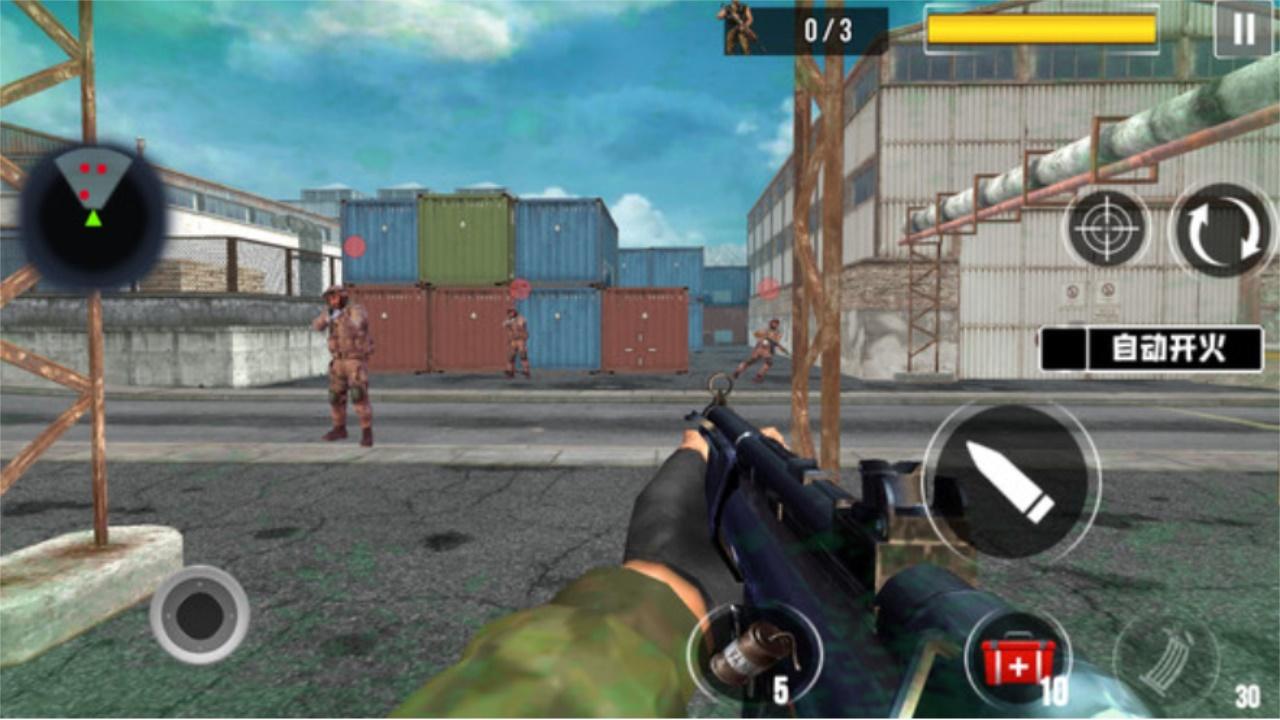 这是一款3D的超刺激枪战游戏,游戏内集合了上千个关卡,消灭敌人、解救人质、破坏建筑,每个关卡都有不同的任务!完成任务后会获得游戏奖励,你可以用来兑换新的武器,购买手雷或医疗包。关卡中手雷可以帮您更有效的清除敌人! 真实刺激的枪战已经开始,快来领取你的任务!