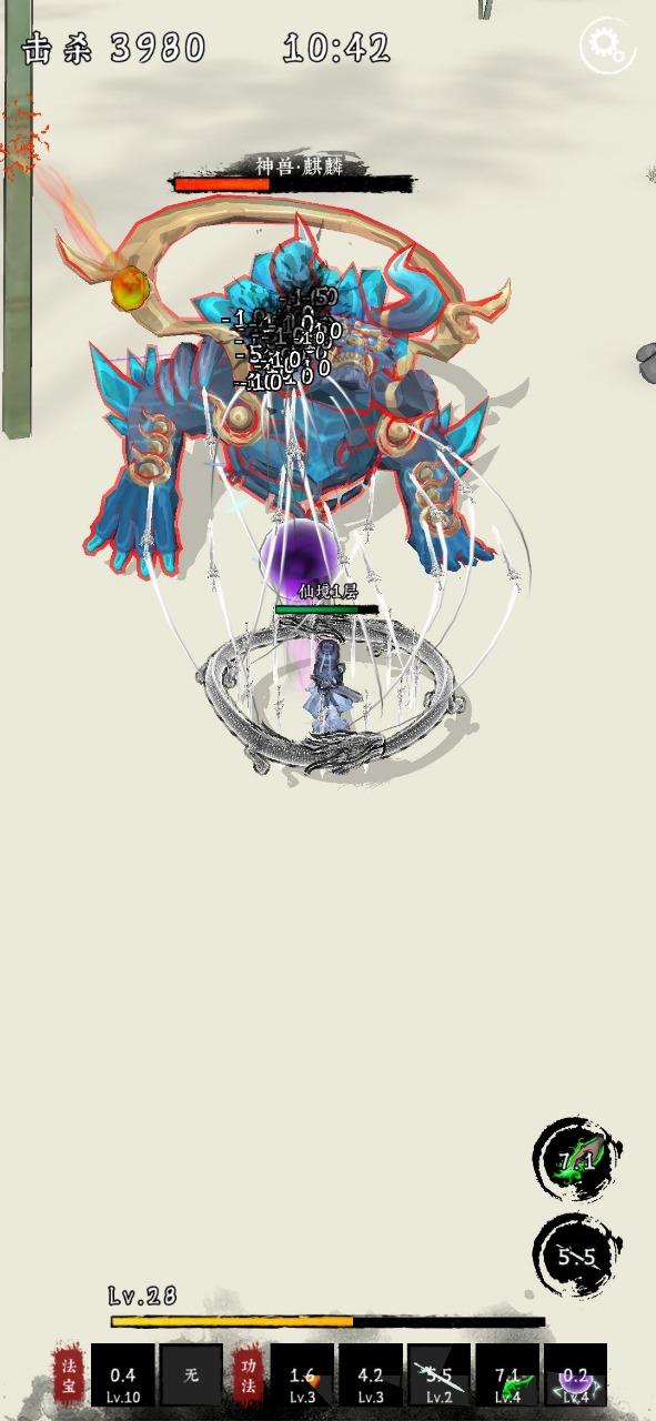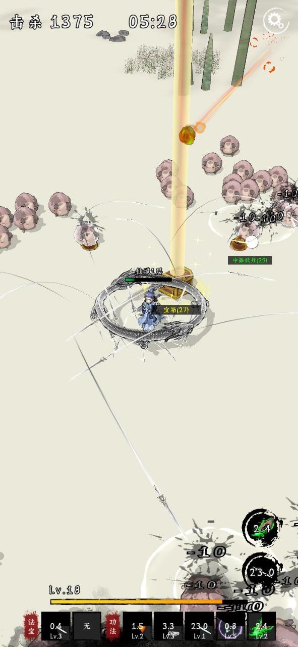 一款roguelike修仙游戏,击杀小怪获取经验,妖丹,道具等。
