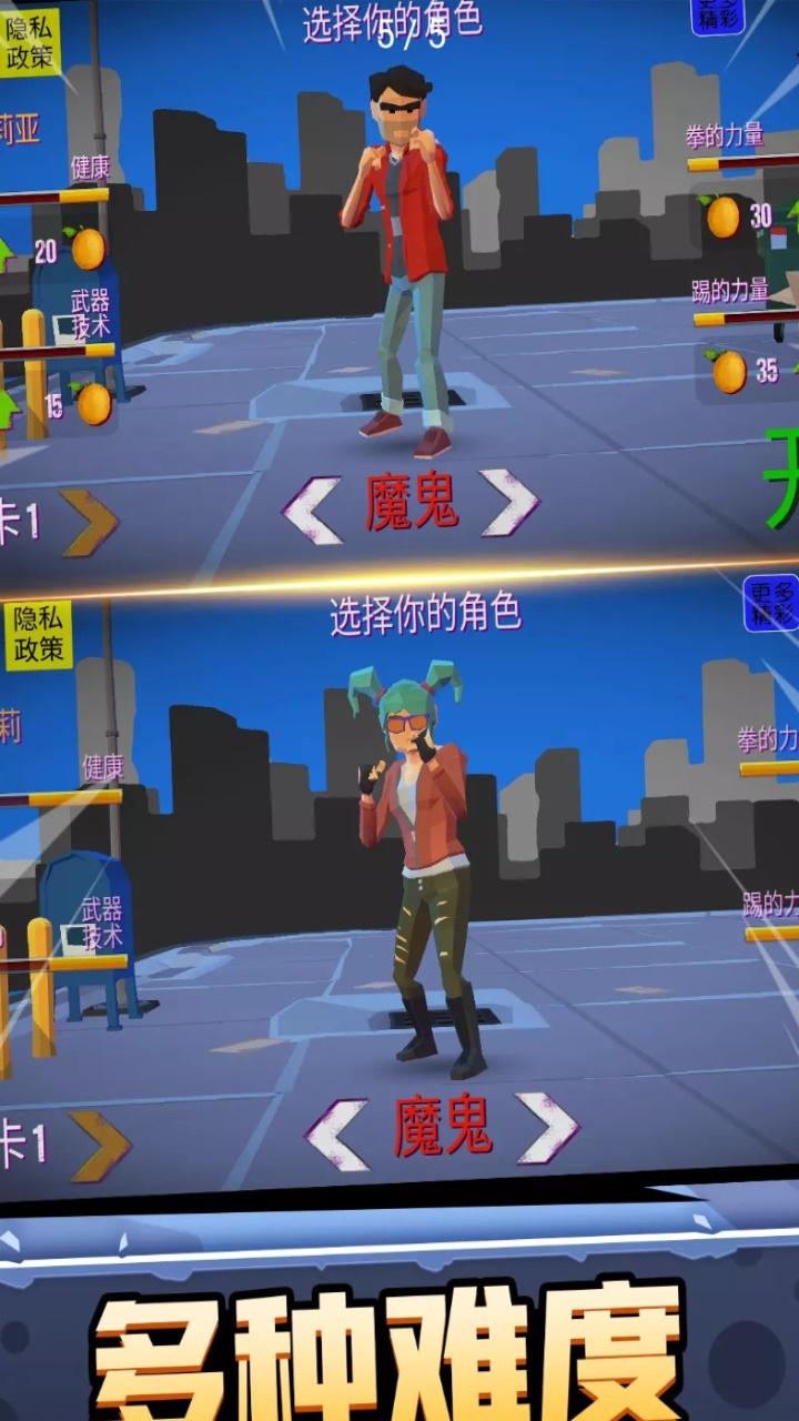 简约而不简单源自于传统武术的招式,手脚齐用的花式旋风腿任意拿捏对手,以一敌多超高的控制技巧,无一不让主角们战无不胜、所向披靡,漫画般的场景,精彩绝伦的格斗连招,酣畅淋漓的战斗特效,让我们体验到仿若英雄归来一样的格斗场景,根本停不下来往前进的步伐!