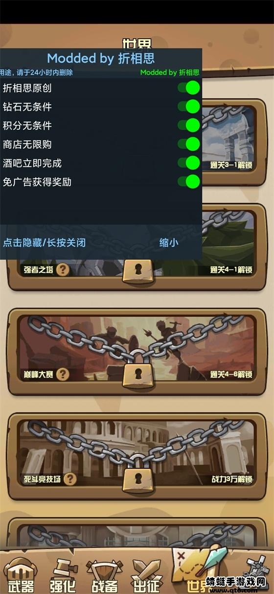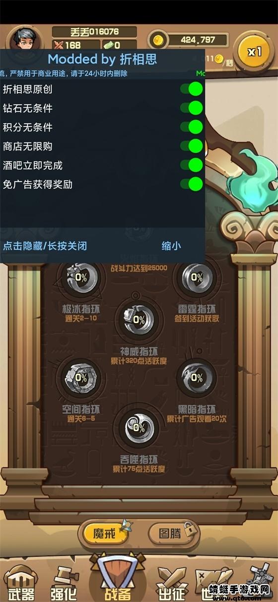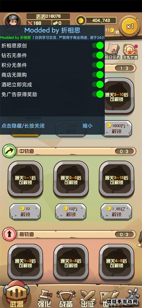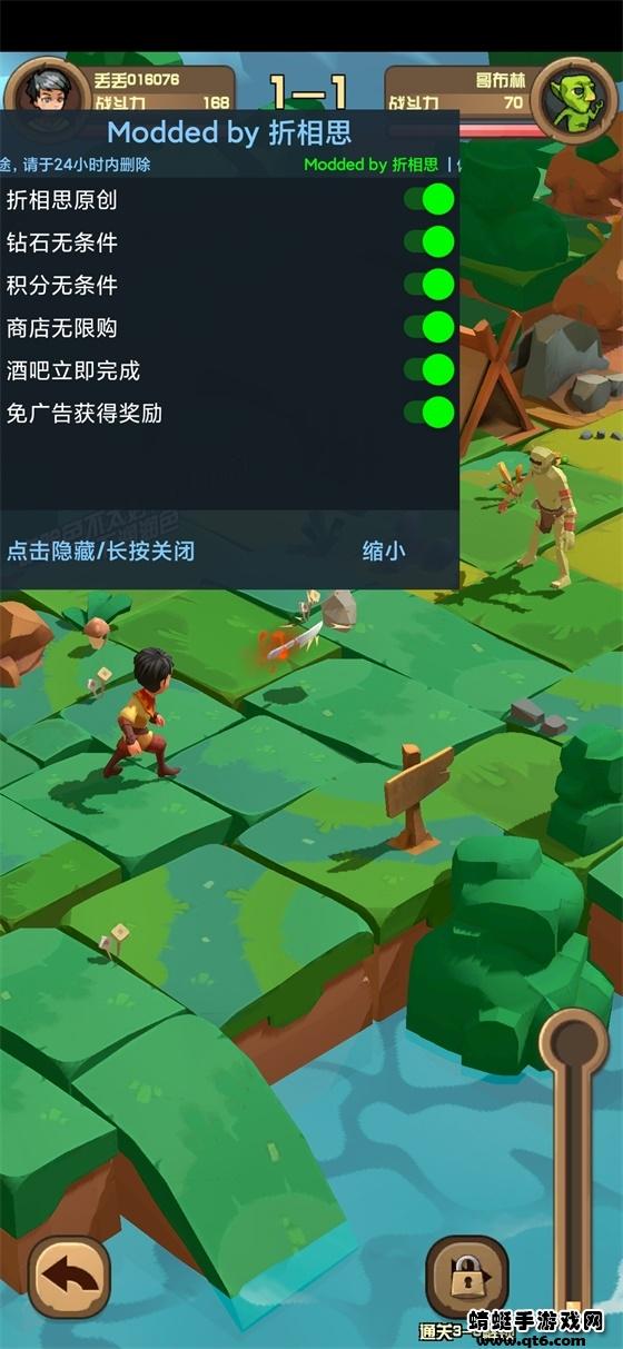 丢丢斗恶龙游戏已经破解成免广告获得奖励了,游戏引导比较全面,对话文本中不乏网络梗和各种俏皮话,很幽默风趣,核心玩法是策略战斗,战斗过程自动进行,在战前有武器卡牌上阵和配技能的选择策略,有一定搭配空间可以研究。