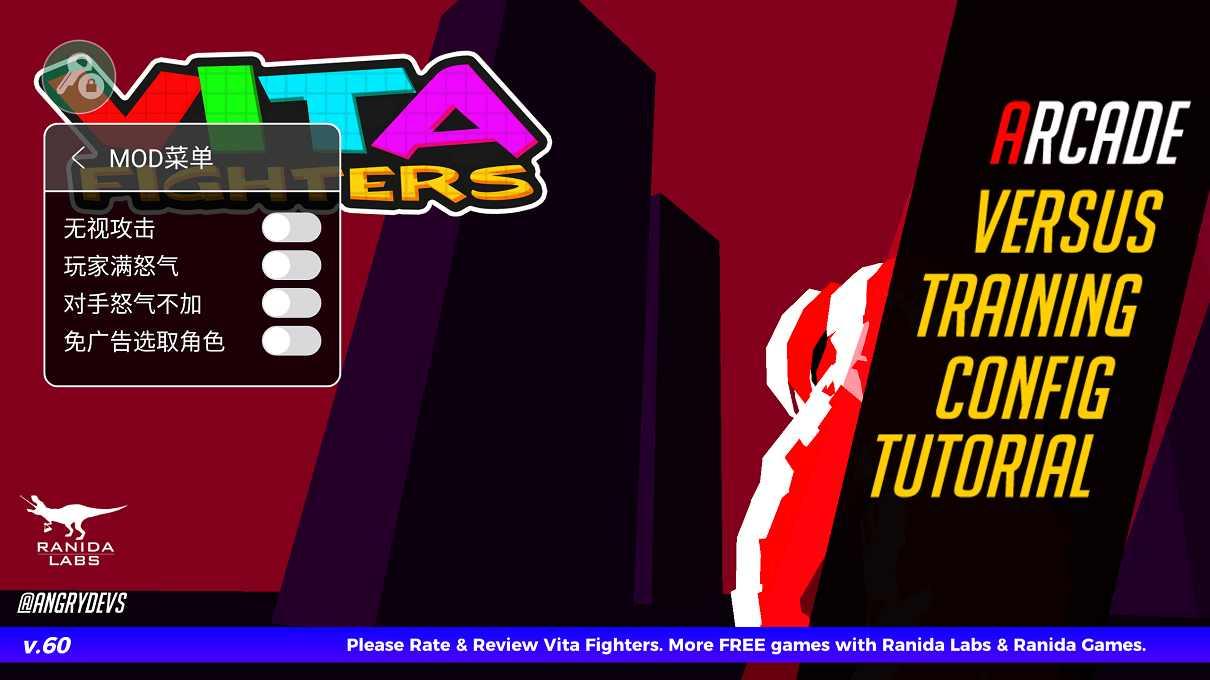 维塔战士破解版是内置了一个作弊菜单,玩家将能使用菜单完成很多的有趣玩法,你可以开启无视攻击、玩家满怒气、对手怒气不加以及免广告选取角色,每一个破解的功能都是做得相当的实用的,游戏本身也是有着非常不错的战斗体验,丰富的角色以及多样化的战斗操作玩法,喜欢这款破解的格斗游戏的玩家就快来下载体验吧。