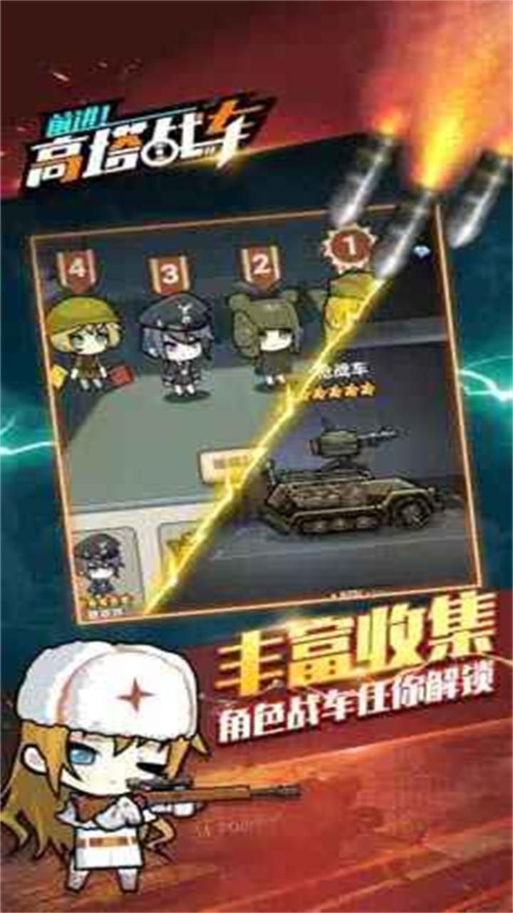 前进高塔战车手游在游戏中融合了建设,rougelike和射击的多种元素内容,你需要在游戏中扮演指挥官,带领你的队员驾驶高塔占城,前往战场击败敌人,保卫世界的和平,多样的战车搭配拥有更多的战术多样性。