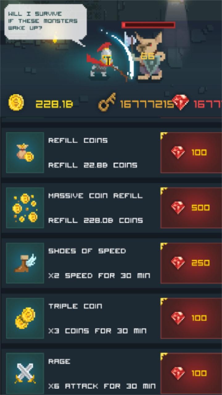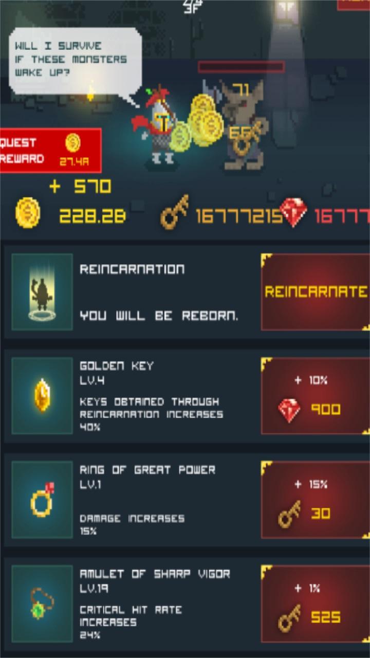 中年骑士金先生是一款充满了神秘感的冒险游戏,引导无畏的英雄前往地牢击败各种怪物,我们控制的游戏英雄角色会不断的进行升级,尝试最新的武器攻击,将所有的敌人打得落花流水。