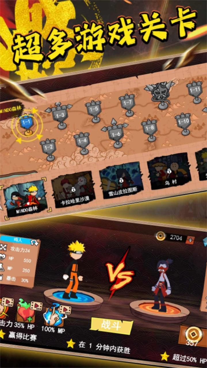 1、在游戏中玩家将通过操作一个火柴人进行闯关战斗,击败更多对手不停的进行下一关,然后夺取最终的胜利完美通关!