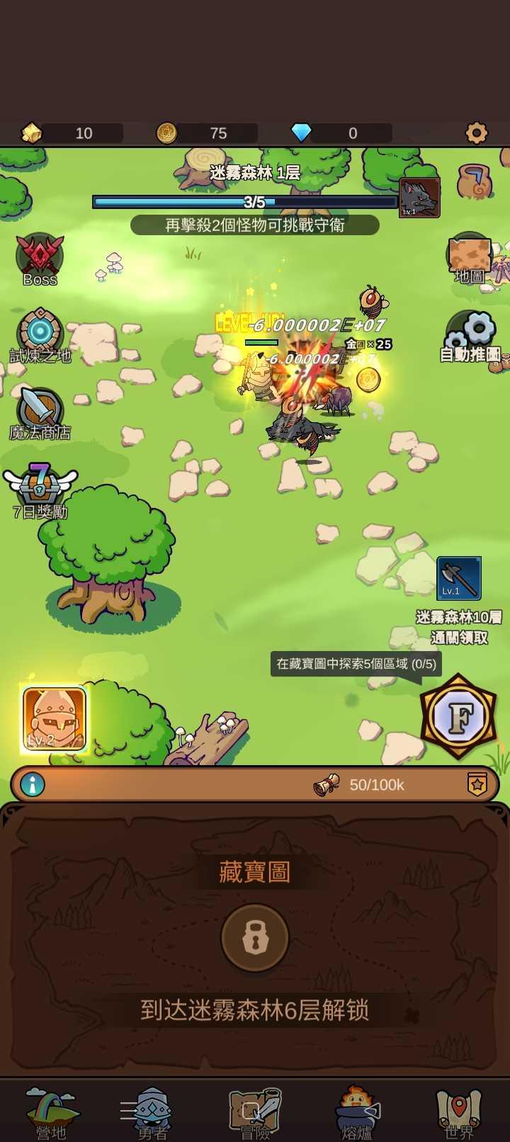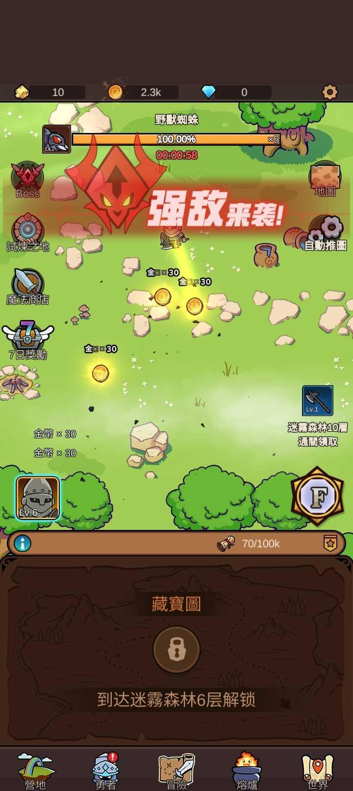 传奇探宝队是一款放置类型的冒险游戏,玩起来很是轻松休闲,超多的玩法和模式可以供大家选择,在地图中与怪物进行厮杀,获取各种装备武器奖励,提升勇者的等级,解锁新的勇者来组建队伍,展开更为刺激的冒险之旅。