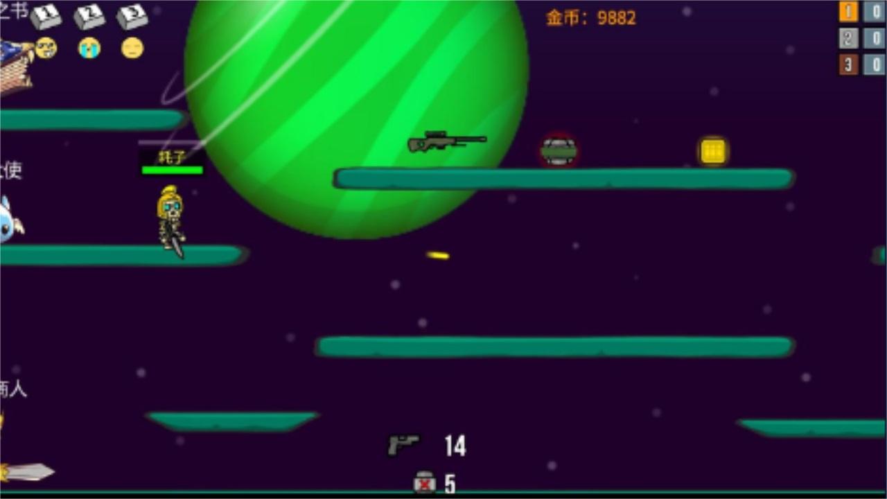 冲锋枪、手枪、RPG等等,充分发挥操作空间。横版射击,拿起你的武器开始挑战吧!一款2D平台射击休闲小游戏。做轮盘控制移动,点击屏幕射击。拿起武器,然后出发吧!