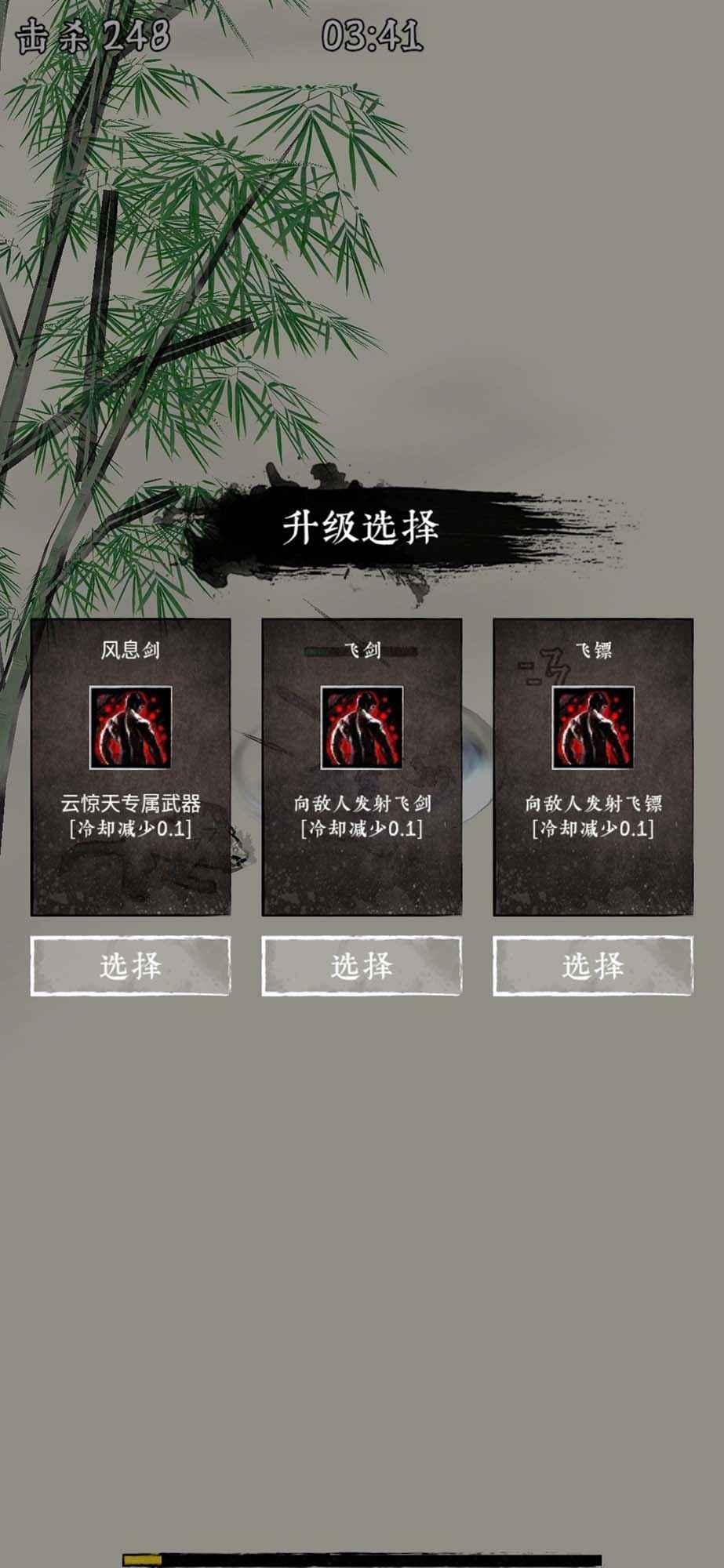 游戏当中我们需要控制一个剑仙去消灭怪物,然后获取经验值,升级之后就可以选择新的技能。