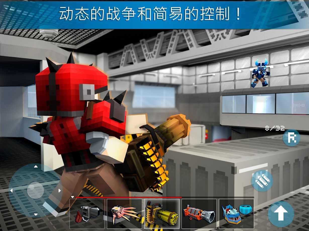 游戏中玩家可以选择不同的方块人冒险,可以选择加特林、散弹枪等武器进行战斗。