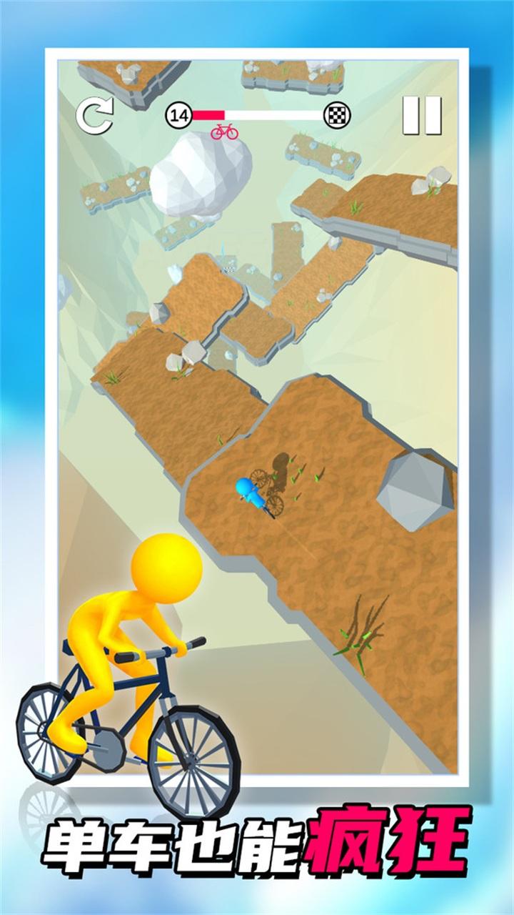 我不是车神手游,游戏的玩法非常的考验玩家们的反应能力,你需要骑行自行车在关卡中进行闯关挑战,游戏的一大特色就是游戏中的场景非常的多样化,你可以前往矿山,雪山,城市中的各种地方参与各种不同的自行车特技闯关。