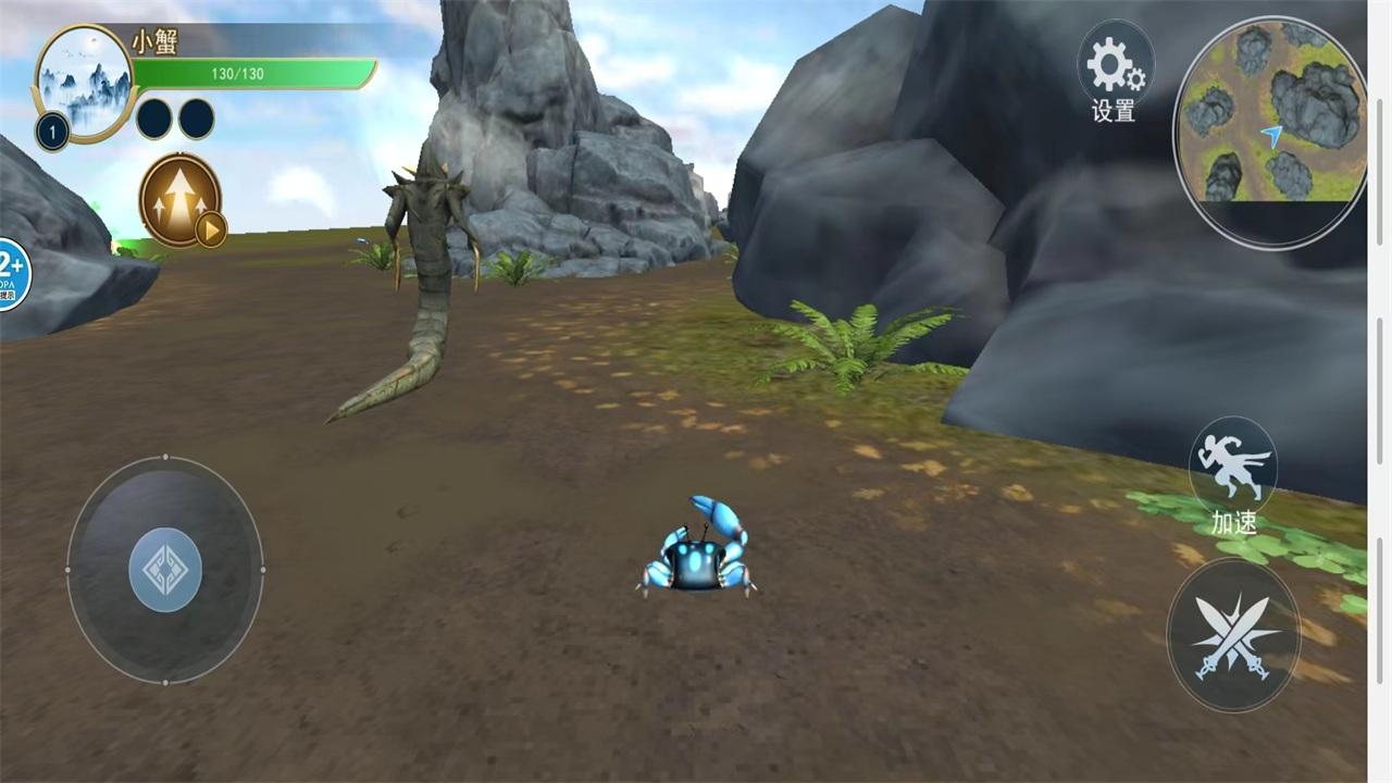 吞噬进化这一类游戏的玩法相信也不让我多说,各位都清楚。无非就是吞噬异兽来进化自己。接下来说说游戏的具体玩法和操作。在游戏中玩家需要操控自己的异兽去攻击其他异兽。将其他异兽击败后,就可以吞噬击败的异兽来获取经验升级。游戏中每升10级就可进化一次,一开始我以为游戏是随机进化,后来玩了多次之后发现进化是固定的,这一点会大大降低游戏的可玩性。在游戏中拥有4个Boss,玩家操控自己的异兽不断升级打败4个Boss后几个通关。游戏中左手用来操控方向,右手用来点击按键。按键有三个:攻击、加速以及击败异兽后的吞噬。然后再来说说游戏的特色。在游戏中每过一段时间就会有巨龙来袭,此时天空会变暗,巨龙会伸出爪子踩踏自己的异兽。这时玩家就需要注意身下的影子。如果出现龙爪的影子,就要赶快躲开,巨龙踩下来后爪子会停留一下,玩家可以趁机攻击龙爪。过一会后,巨龙就会开,天也会随之变晴。此外还有天降神蛋,通过字面意思就可以知道是从天上掉下来一颗蛋。蛋掉下来之后,玩家可以操控异兽攻击这颗蛋。将蛋的血条打空之后,就可以吞噬这个蛋获得大量经验。