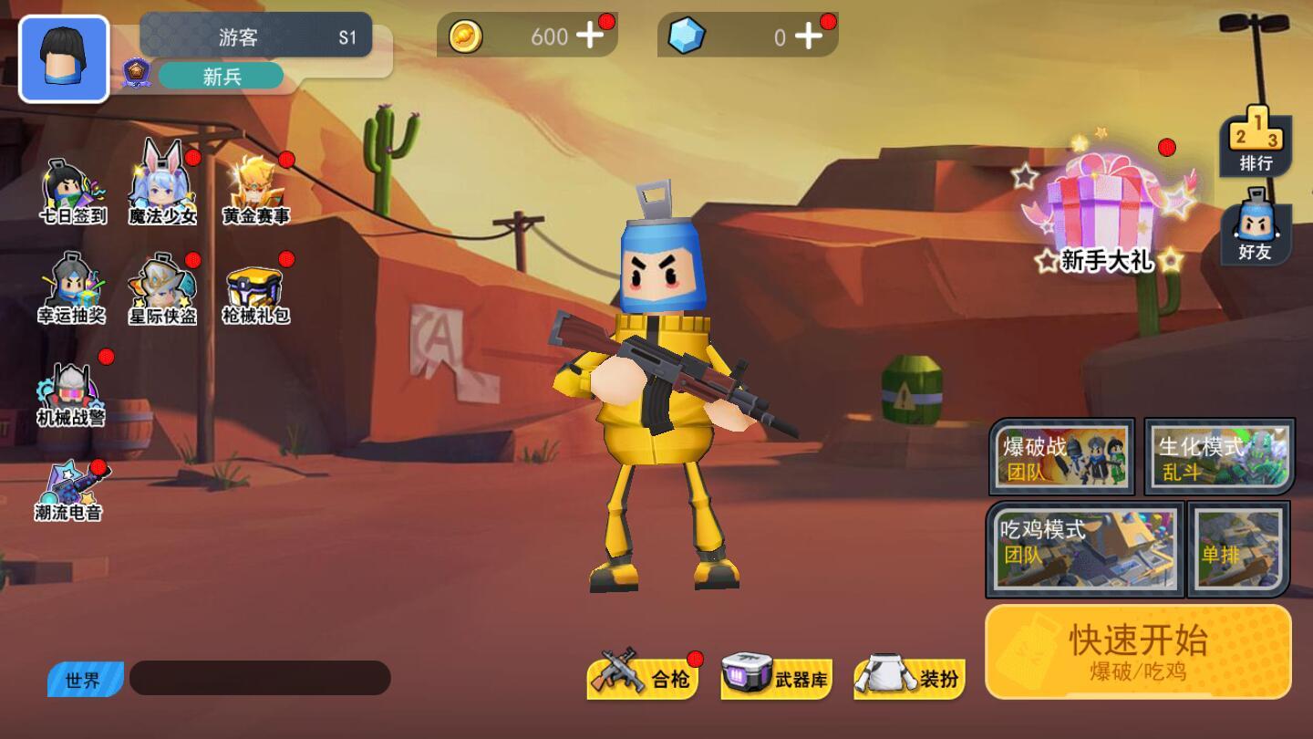 1.三分钟的超高速对决,热血刺激的乱斗体验,枪械道具任意切换获取;
