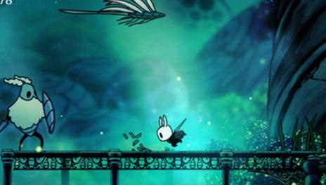 3、左右和跳起控制小小骑士,跳过悬崖,台阶等障碍,躲避藏在悬崖下的敌人。使用攻击消灭敌人,安全抵达终点。