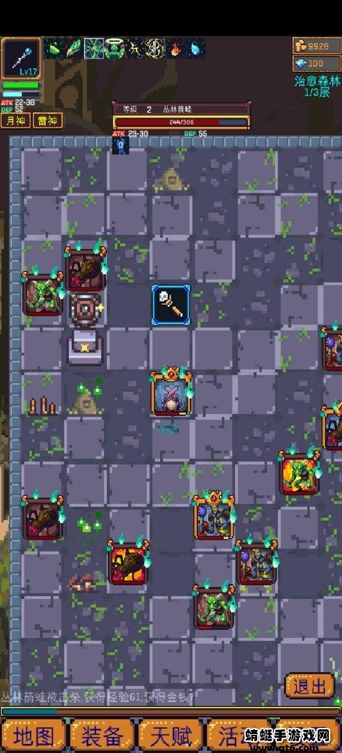 3.可以正式的闯荡地下了。左滑一下屏幕,直到看到有地牢的地方,一开始的话,最好还是选择比较简单一点的地牢。就从普通难度开始入手,然后一关又一关的把里面的怪物给打败。当然地牢里面并不是所有的地图都怪物,也有一些宝箱地图或者是其他地图等等。