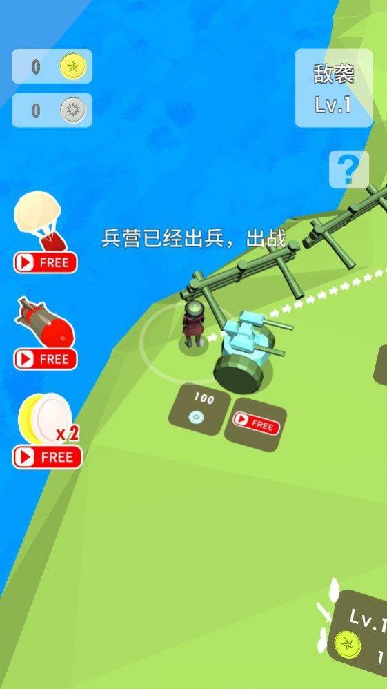 1、玩家作为小小炮兵,解锁更多炮弹,瞄准发射命中你的对手完成闯关,更多小兵解锁挑战,完成闯关吧;