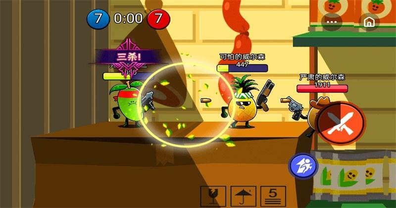 炮灰冲冲冲不是一般的休闲闯关游戏而是三人模式下的moba战斗游戏玩法,你所控制的角色形象采用了卡通水果的外星让游戏更加的亲民,拿着不同的武器可以造成不同的杀伤,同时武器还能升级,在规定的时间内击杀对手更多次数即可胜利。