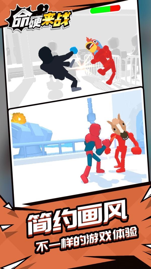 命硬来战是一款玩起来超爽的格斗类竞技游戏,游戏的画面简洁,以橡皮人为经典的角色形象,在这款游戏中你需要不断地提高自己的战斗技巧,以此来击败各种强大的敌人,快来试试吧!