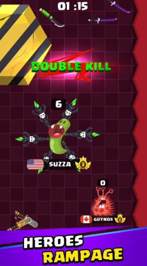 3、与全球玩家自动匹配,具有挑战性的游戏,数十把刀和英雄解锁大师。