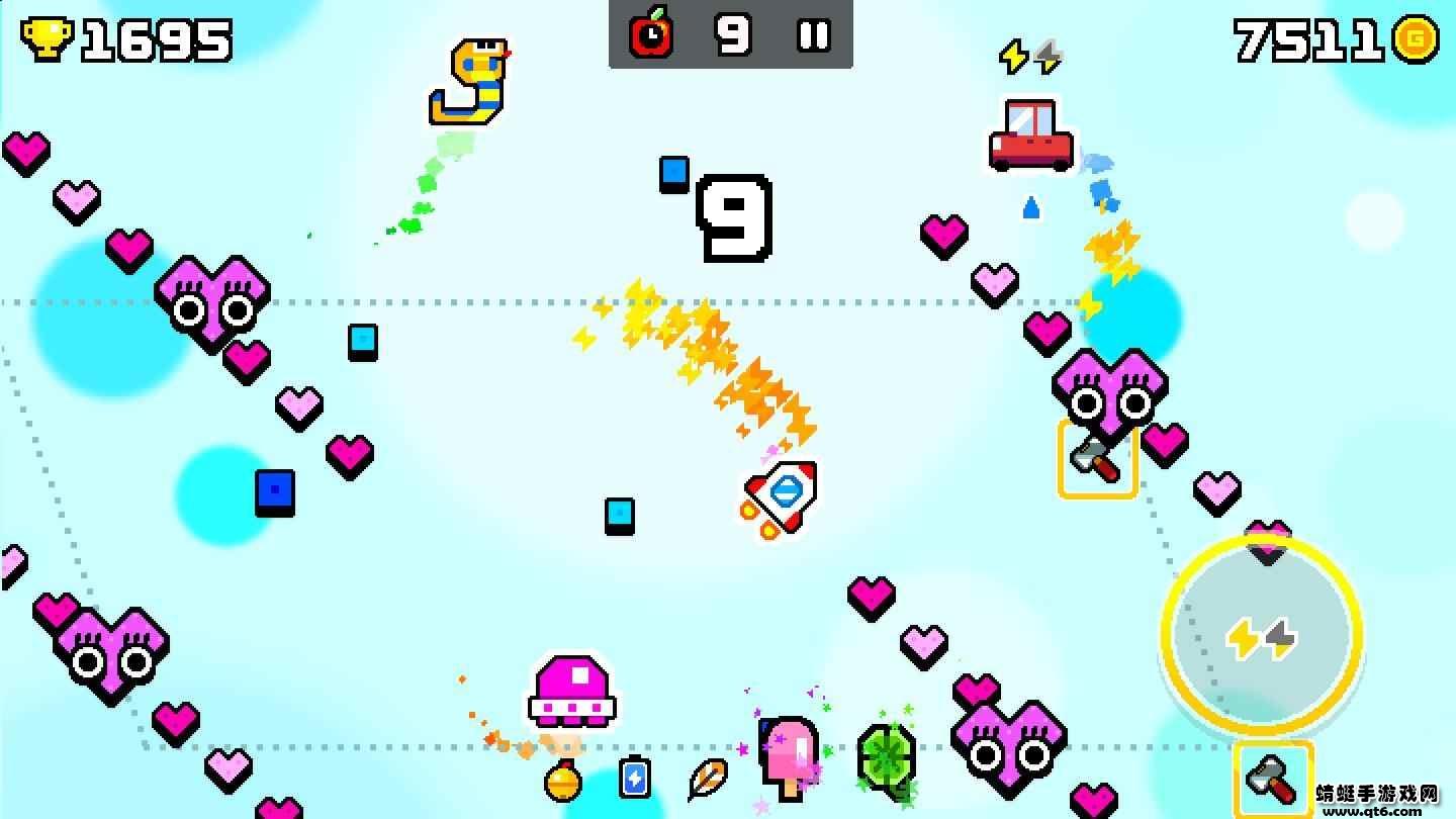 飞行.冲刺.闪躲,捡取锤子,击碎方块怪物!