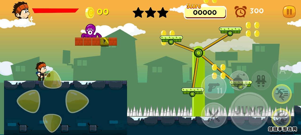 2.玩法简单,按压屏幕控制弹跳力度.左右拖动可以控制跳跃方向;