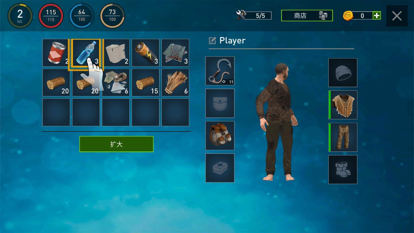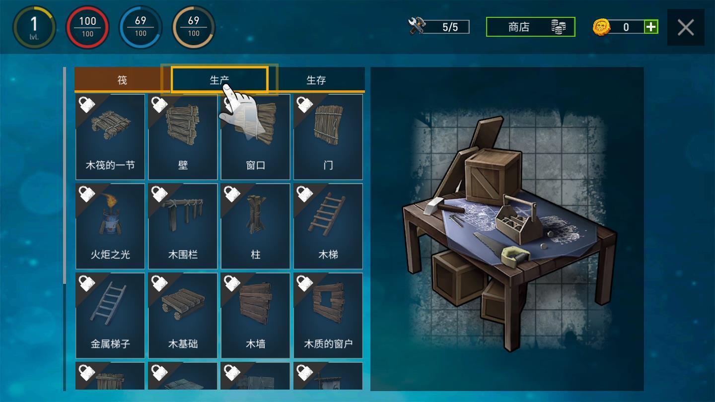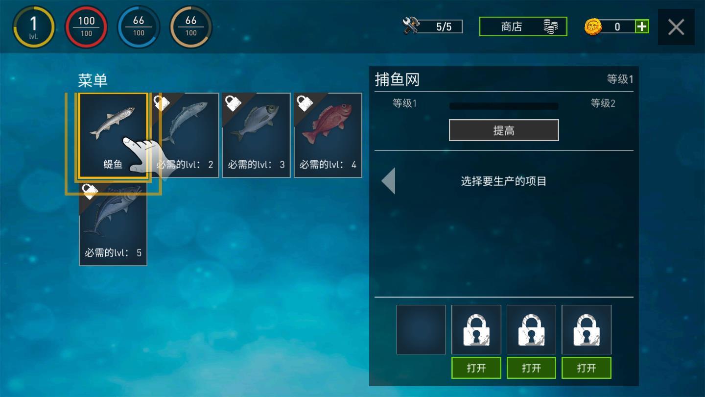 开局时用钩子收集资源,注意不要漏木桶,勾不到就下水捞,先造杯子和煮水器,然后造炉子和鱼竿。