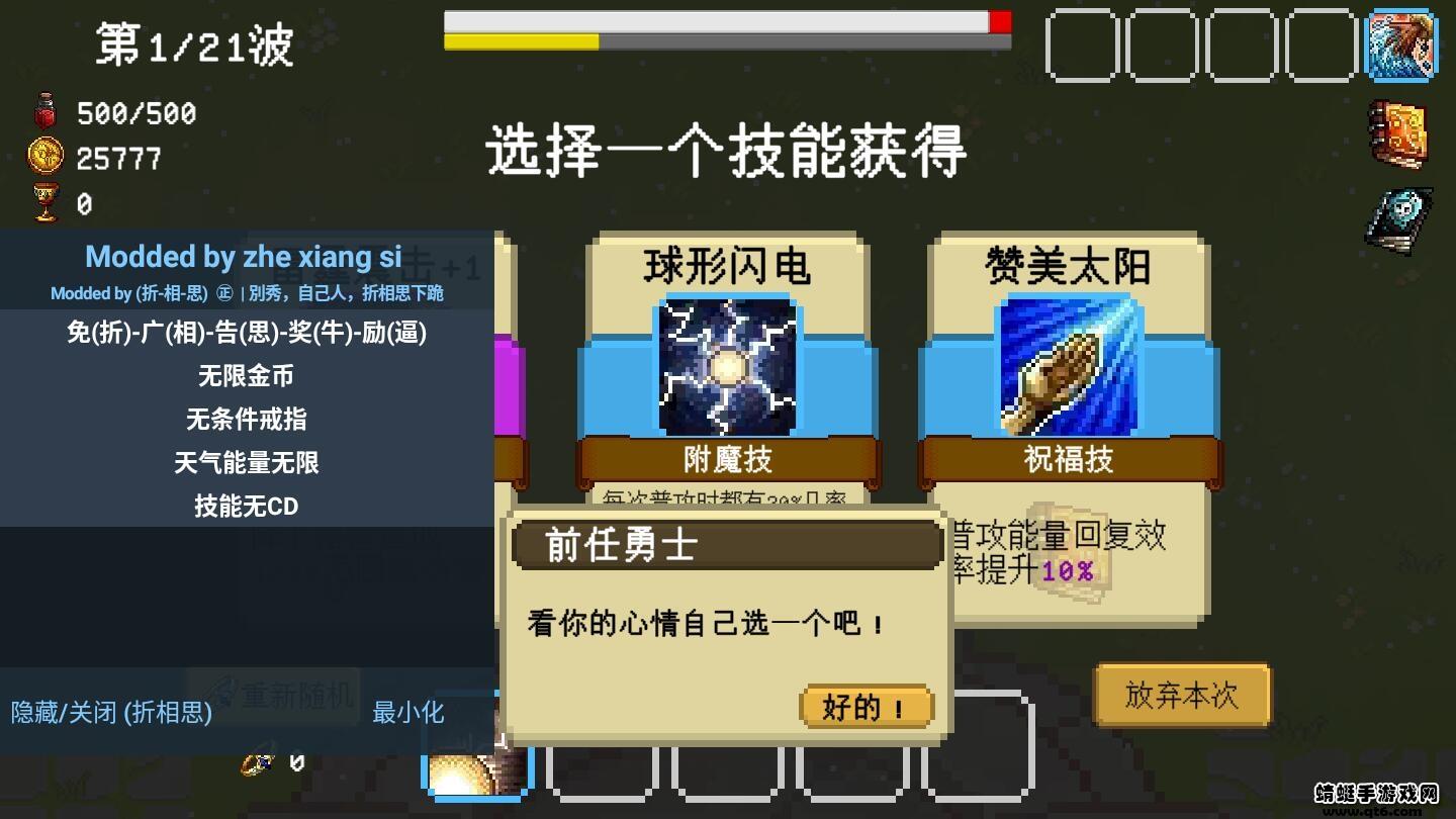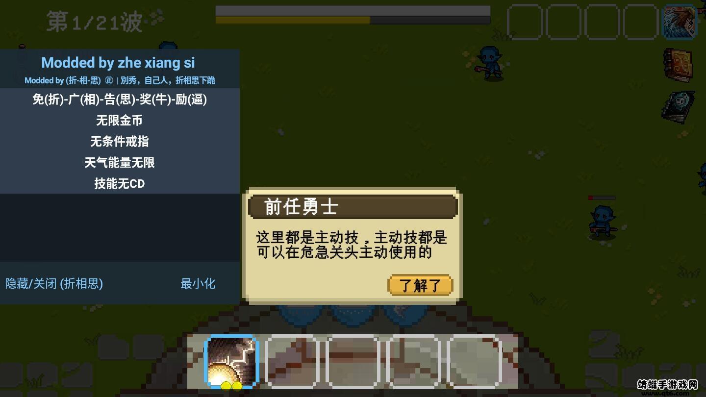 碾碎它们游戏为大家内置了作弊菜单,有无限金币免广告和无限技能等功能,这款游戏虽然采用像素的风格,但是其中的战斗玩法非常的有趣,玩家需要抵御敌人的攻击,保卫自己的城堡,作为一名勇士您还可以获取到各种技能。