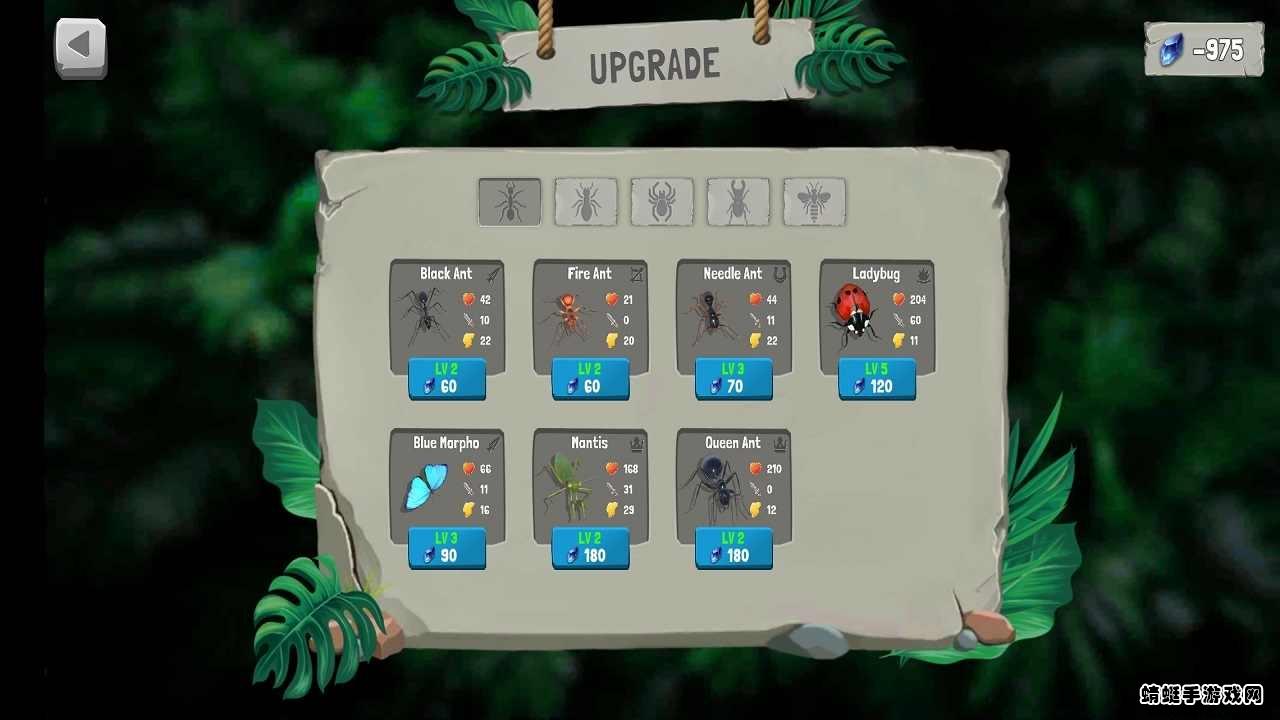 解锁更多虫虫兵种,提升虫虫的内部科技,增强兵种的作战能力。